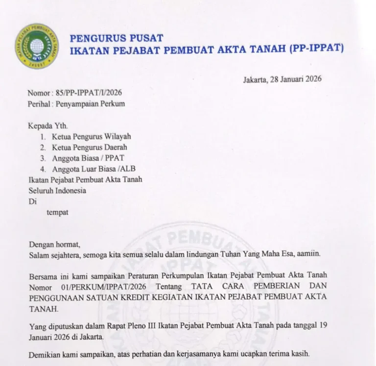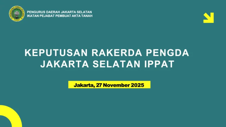 JAKARTA – Pengurus Daerah Jakarta Selatan Ikatan Pejabat Pembuat Akta Tanah (Pengda Jaksel IPPAT) resmi menyampaikan ketentuan dan persyaratan bagi