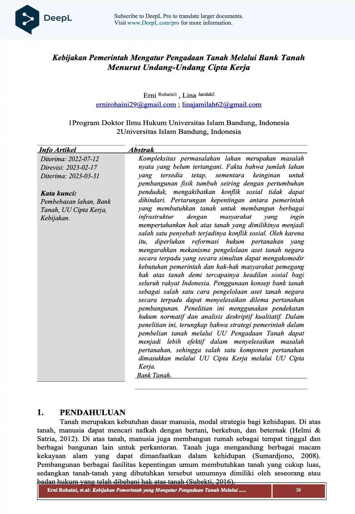 Konsep Bank Tanah diajukan sebagai salah satu metode pengelolaan aset tanah negara yang terpadu untuk menyelesaikan dilema pertanahan pembangunan. Penelitian ini menggunakan pendekatan hukum normatif dan analisis deskriptif kualitatif untuk mengungkap strategi pemerintah dalam pengadaan tanah melalui Undang-Undang Pengadaan Tanah, serta memperkenalkan komponen pertanahan melalui Undang-Undang Cipta Kerja, yaitu Bank Tanah.